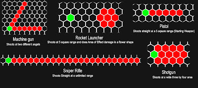 Sniper Rifle, Rocket Launcher, Machine Gun and Pistol. The Pistol was